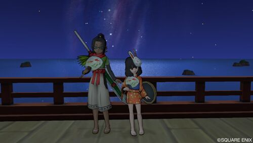 今日は久々に友達と遊びました。最初に七夕イベントを進めました。弟(ゴッホ)の方は一足先に終わらせていたので大体の流れは分かっていたのでスムーズに出来ました。今回は姉(ニーナ)で織姫役、友達が彦星役でした。儀式後は二人並んでの記念撮影 ▲報酬…